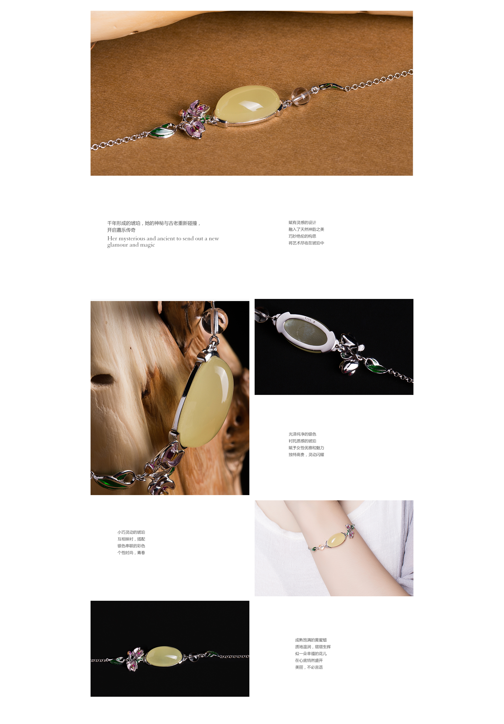 蜜蜡银镶手链