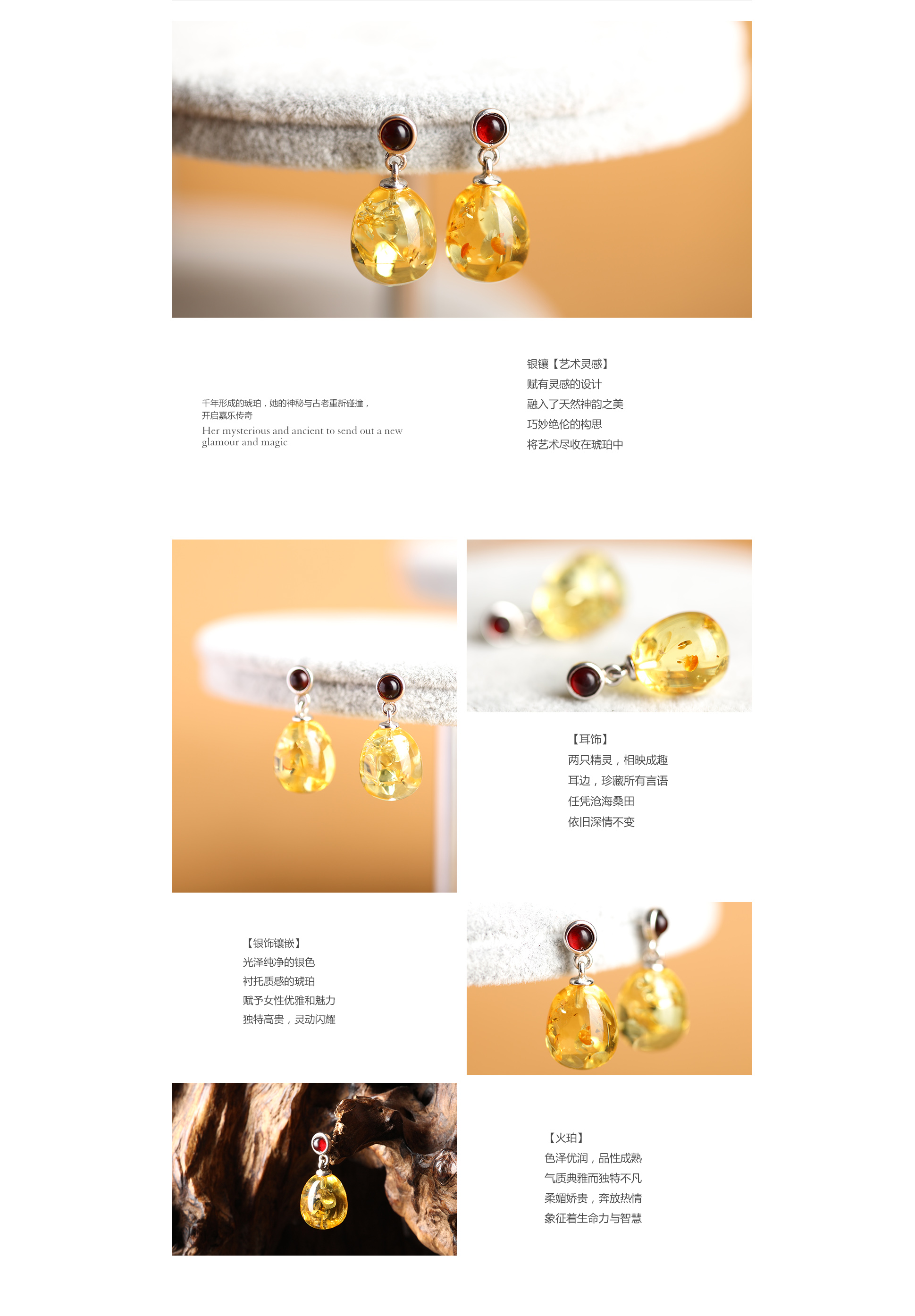红叶珀银镶耳饰