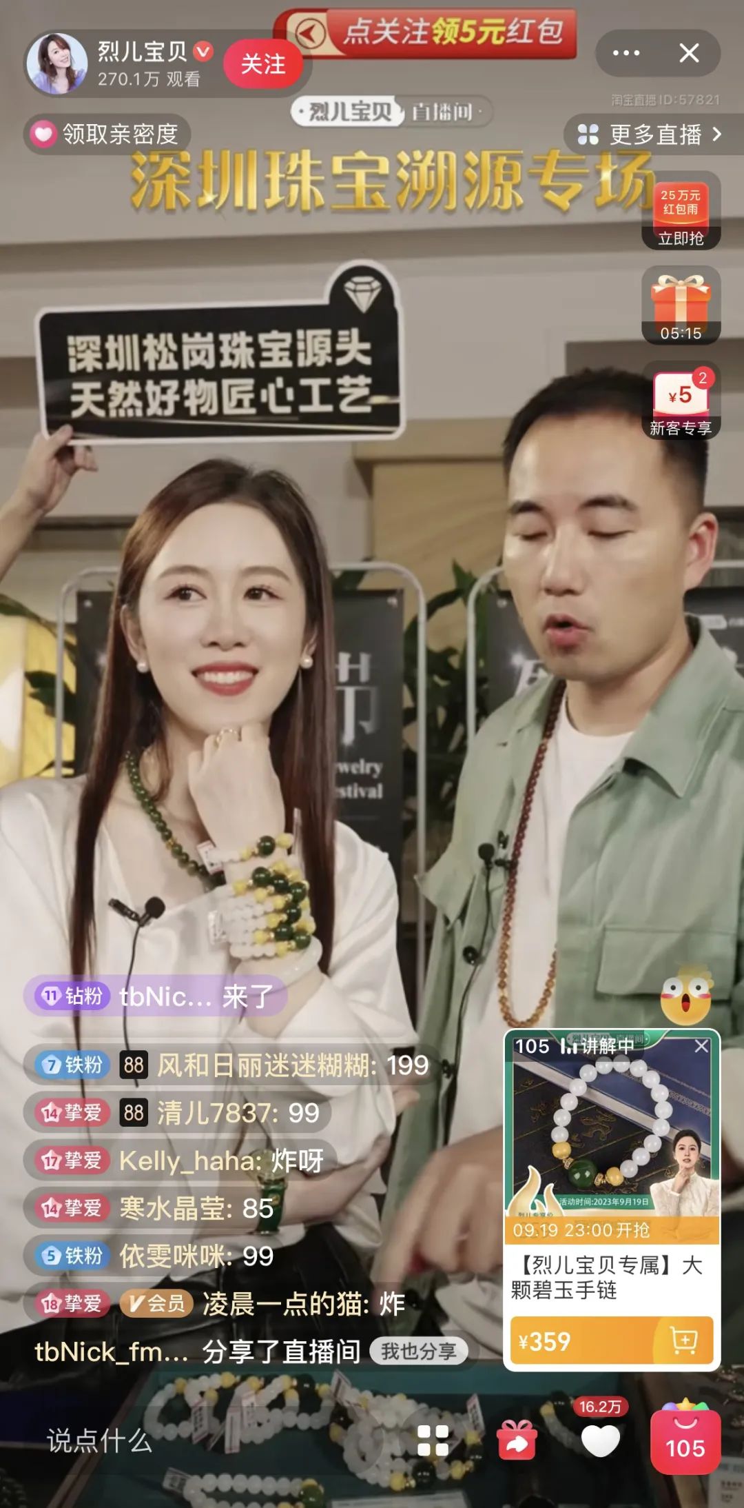 此次与淘宝直播超头部达人“烈儿宝贝”联合发起“深圳珠宝溯源专场”直播,是松岗琥珀在层出不穷的新需求、新玩法的电商大环境下做出的新探索,以极具影响力的达人为桥梁,对接优质电商平台资源,触达海量消费者,为琥珀商家拓展新商机,为琥珀行业创造新生机,为大湾区经济高质量发展贡献琥珀力量。