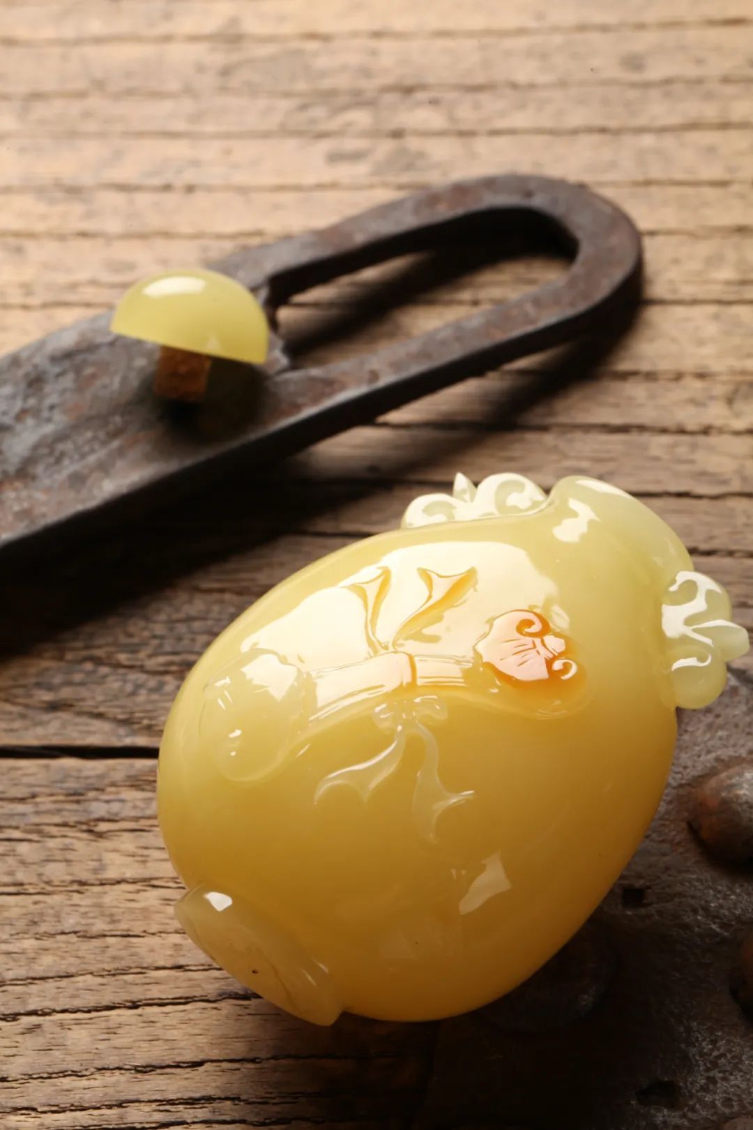 挑选琥珀雕刻品时需注意布局结构的合理性,雕刻线条的流畅性等,刻画是否生动传神,若有“俏色”工艺,运用是否恰到好处。